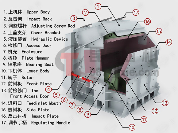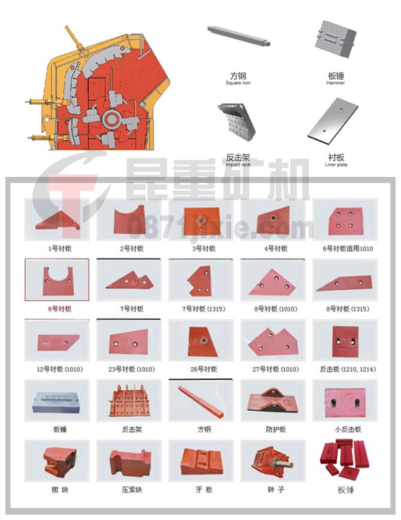 反擊板與板錘間隙能方便調(diào)節(jié),有效控制出料粒度,顆粒形狀好。