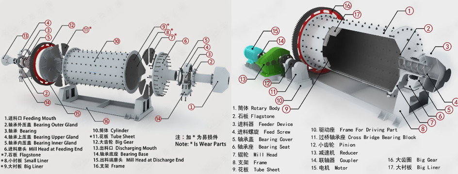 濕式溢流型球磨機(jī)組裝圖: