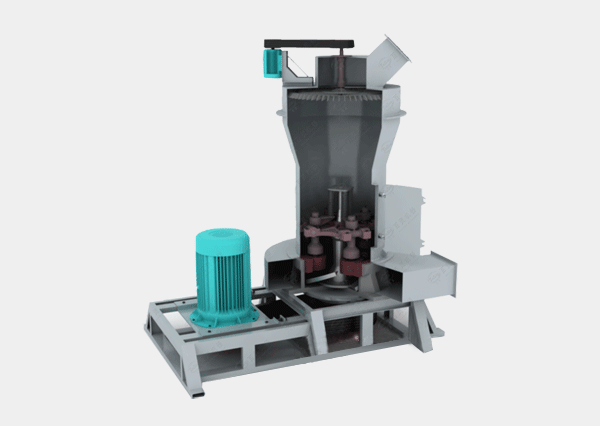 物料研磨后,風(fēng)機(jī)將風(fēng)吹入主機(jī)殼內(nèi),吹起粉末,經(jīng)置于研磨室上方的分析器進(jìn)行分選,細(xì)度過粗的物料又落入研磨室重磨,細(xì)度合乎規(guī)格的隨風(fēng)流進(jìn)入旋風(fēng)收集器,收集后經(jīng)出粉口排出,即為成品。風(fēng)流由大旋風(fēng)收集器上端的回風(fēng)管回入風(fēng)機(jī),風(fēng)路是循環(huán)的,并且在負(fù)壓狀態(tài)下流動,循環(huán)風(fēng)路的風(fēng)量增加部分經(jīng)風(fēng)機(jī)與主機(jī)中間的廢氣管道排出,進(jìn)入小旋風(fēng)收集器,進(jìn)行凈化處理。