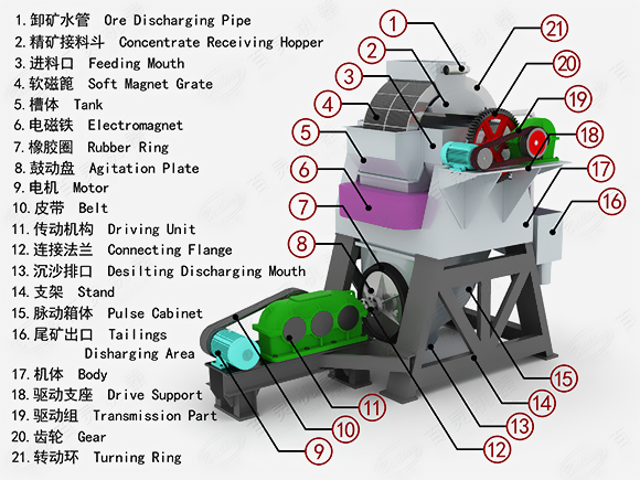 電磁磁選機(jī)的構(gòu)造除磁系外,其他構(gòu)造都和永磁磁選機(jī)類似,也...